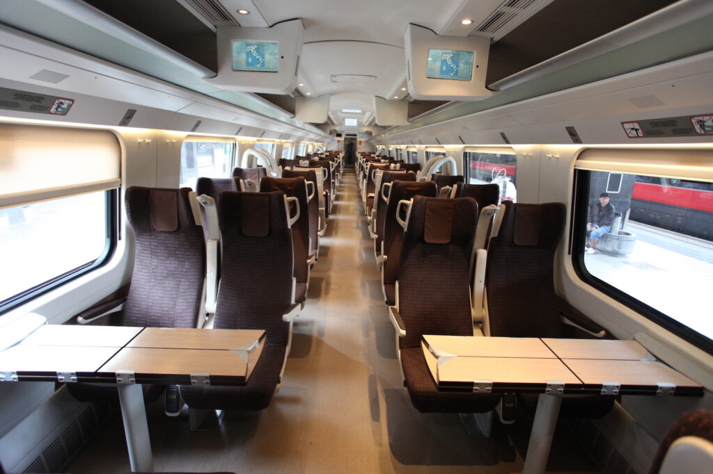 Enter your departure and arrival cities along with travel dates in the search bar. Hit “Search” to view available options. You’ll see various trains listed by time, duration, and price.